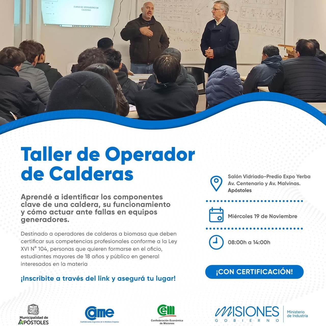 El encuentro se realizará el miércoles 19 de noviembre en el Salón Vidriado del Predio Expo Yerba. La capacitación está dirigida a operadores, estudiantes y público interesado en adquirir conocimientos sobre el manejo y mantenimiento de calderas a biomasa.
